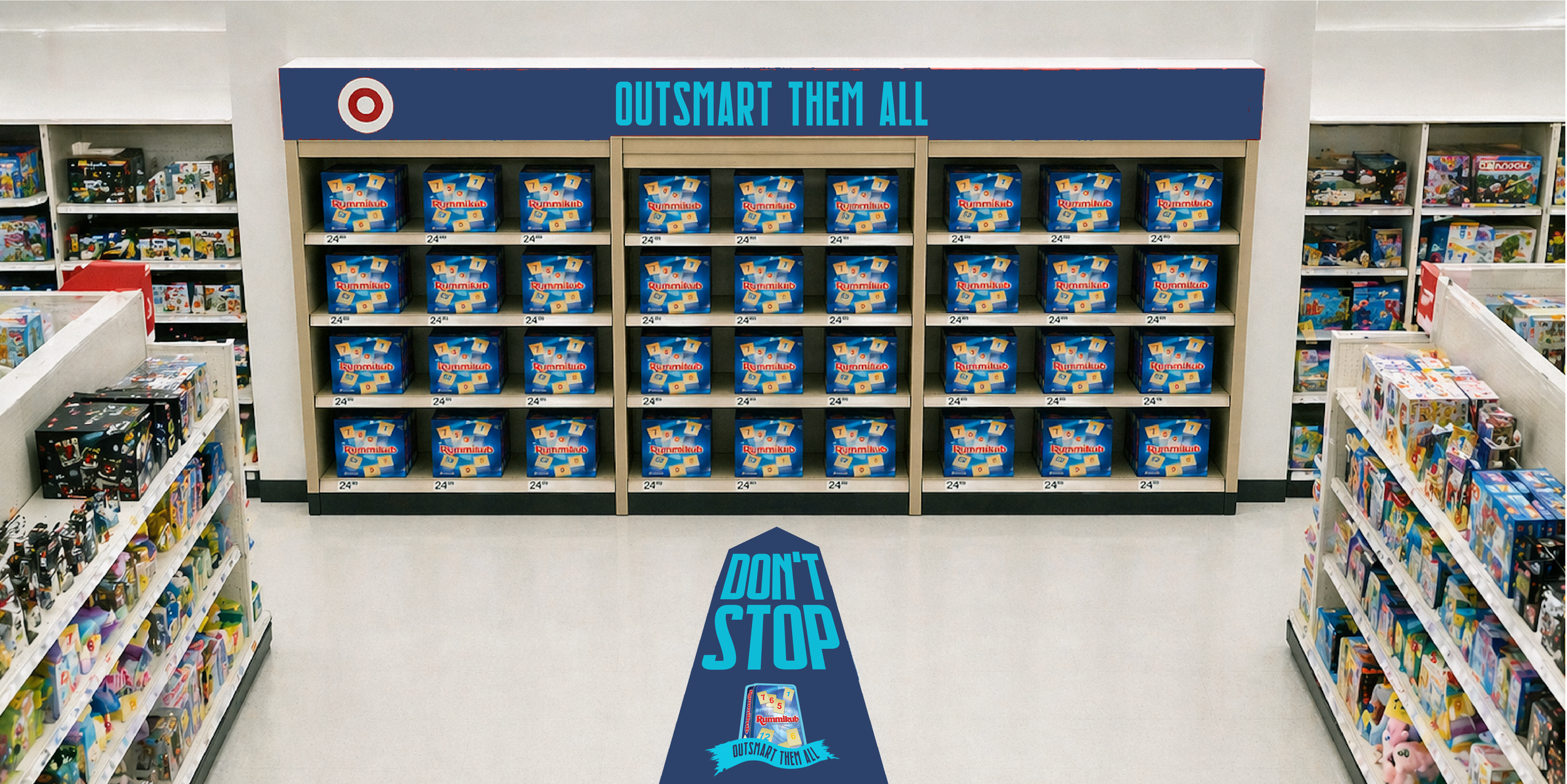 The Loop Hole is a hidden Rummikub speakeasy inside the biggest Target in America (Wesley Chappel, FL), disguised as an ordinary game shelf in the aisle. Shoppers who are clever enough to discover the secret door step into a secret lounge where people gather to do what Rummikub was built for: outsmart each other.